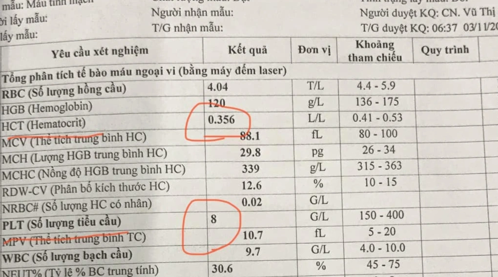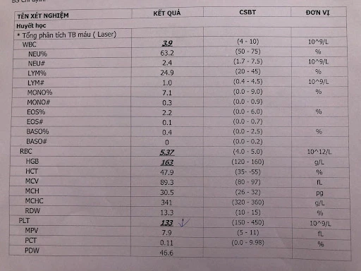 - Khi xét nghiệm nếu tiểu cầu thấp dưới 30g/ L.